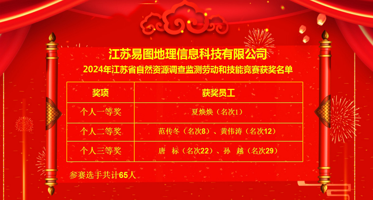 10月12日,2024年江蘇省自然資源調查監測勞動和技能競賽在江蘇省常州市圓滿落下帷幕。我公司派出的5名參賽員工憑借扎實的專業技能,在此次競賽中脫穎而出,均獲得了驕人的成績,載譽而歸。